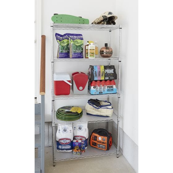 Our 5-tier shelving is 18” deep providing ample storage space. Shelves are height-adjustable in 1" increments and are tested to hold 350 lbs. The included polypropylene mats ensure small items will not fall through the shelves. The chrome-plated finish is durable and rust-resistant. They are NSF-certified for kitchen or pantry use, but strong enough for the garage, workshop, or attic and attractive enough for a home office or basement. The shelves come with floor levelers to compensate for uneven surfaces. Optional locking casters add versatility and ease of movement. Assemble in minutes without tools!