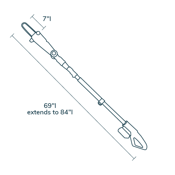 Telescoping pole extends over 7 feet, eliminating the need for ladders.