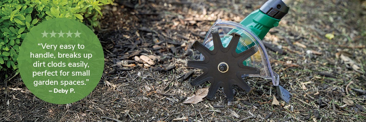 - Precision Tilling Blade - 6" steel blade digs a 2 1/2" deep path in a single pass