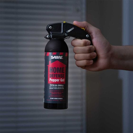 Our Defense Pepper Spray discharges a heavy fog—one burst will cover an entire doorway with a powerful dose. Pistol grip design works like a fire extinguisher—pull the safety ring and you are armed with 10, one-second blasts. Nozzle has a range of 25 feet. 13 fluid ounces.