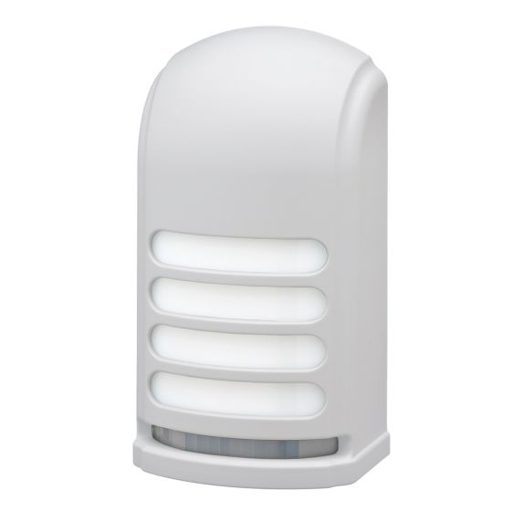 Uses a photocell sensor to automatically activate a low glow accent light at dusk and subsequently turns it off at dawn. However, it comes with the added feature of a 160° motion sensor that has a 30 ft. range. The motion sensor activates a bright LED upon detection to provide better lighting of the covered area. Fully adjustable between high/low brightness and long/short duration. Weatherproof for outdoor use and operates on three C-cell batteries (sold separately). Screws and mounting bracket included. Only available in White. Measures 3 inches by 6 inches—2 inches deep.